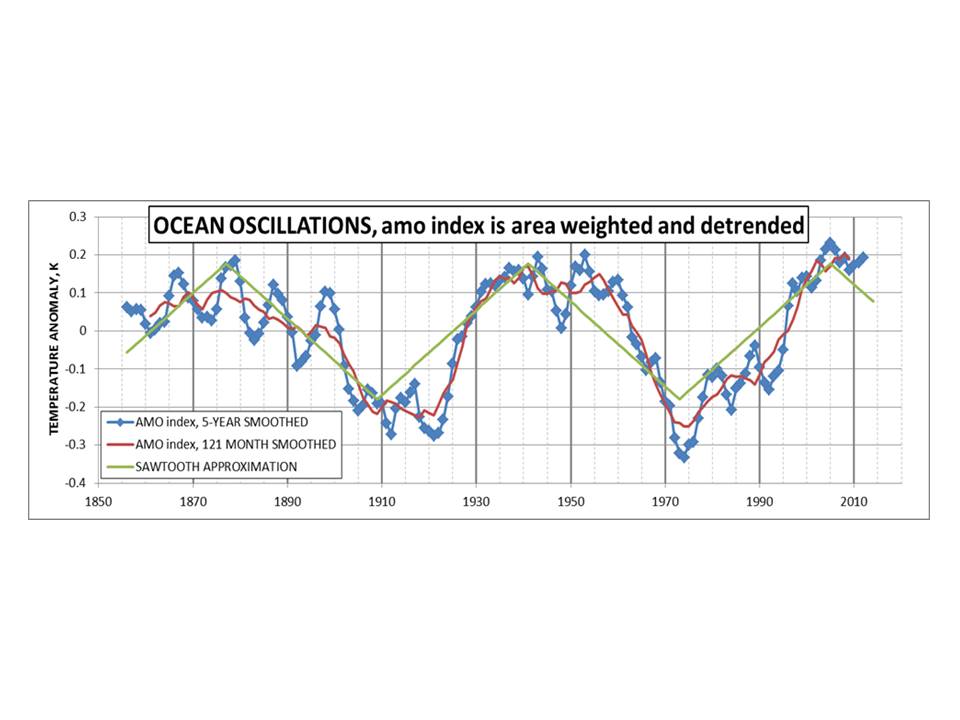 of the net effect of ocean cycles on AGT in year y (α-trend), K